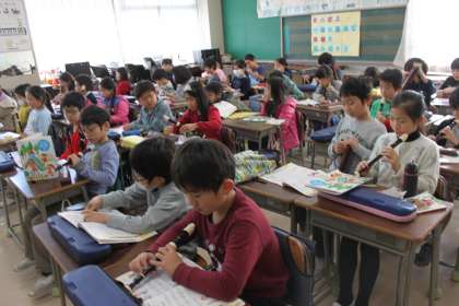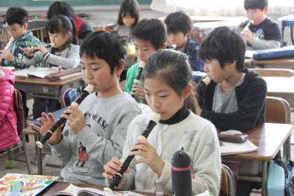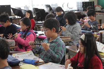 3年生は音楽の時間にリコーダーの練習をしました。
