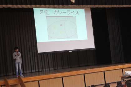 献立ベスト3の発表や給食クイズで楽しい時間を過ごしました。