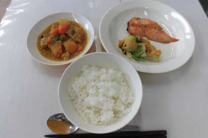 【献立】ごはん・魚の照り焼き・白菜のおかかかけ・かぼちゃのそぼろ煮