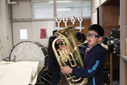 5年生は若小伝統の鼓笛を受け継ぐための準備を始めました。