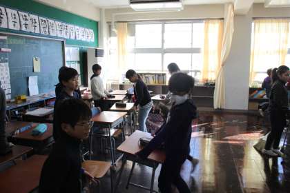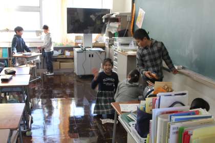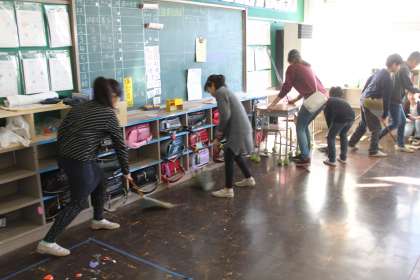 一クラスの人数が一番少ない4年生ですが広い教室をみんなで協力してきれいにしています。
