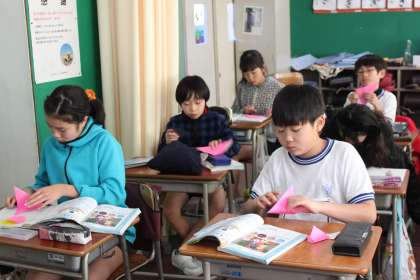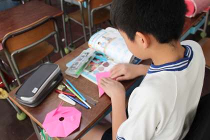 5年生は折り紙で、正八角形と正六角形をつくりました。