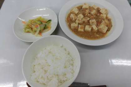 【献立】ごはん・麻婆豆腐・ラーパーツァイ・牛乳