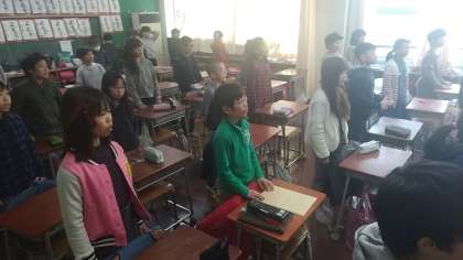 各クラスから、元気いっぱいの若小朗誦の声が響いてきました。