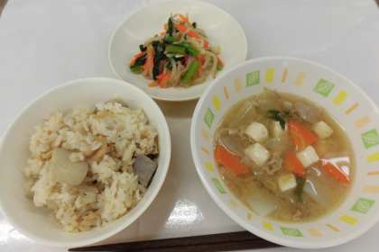 【献立】里芋ごはん・豚汁・おひたし・牛乳