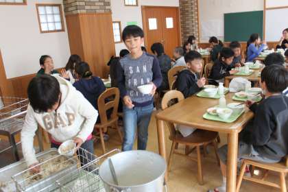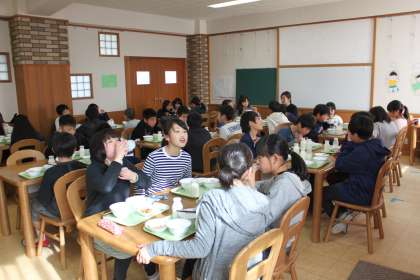 いつもの教室とは違うテーブル、違う景色で、楽しい給食時間が過ぎていきました。