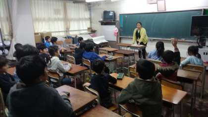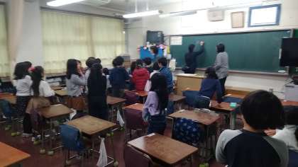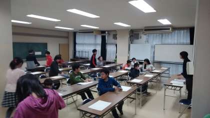 放課後の教室で、たくさんの子達が受験しました。
