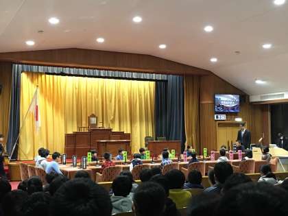 予鈴、本鈴、開会のギャベル(木槌)と本格的です。