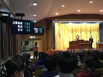 座席にあるボタンで多数決をするのですが、少し反対が多いような…