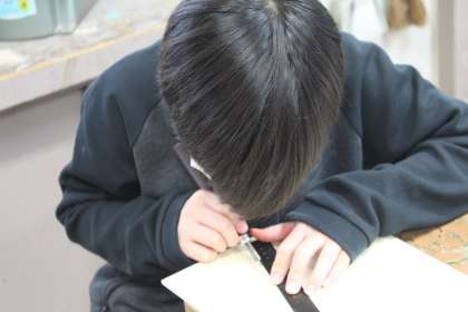 彫刻刀を使う時の約束をしっかりとまもり、ケガもなく制作を終えることができました。
