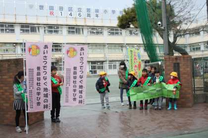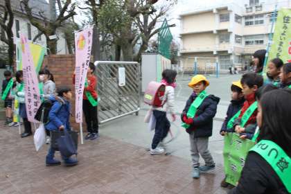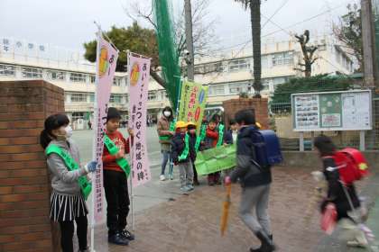 寒い中でもたくさんの子達が元気なあいさつ運動を展開しました。