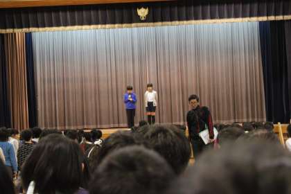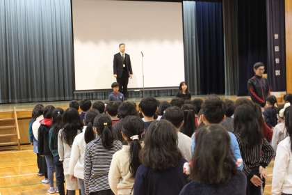 校長先生と元気にあいさつをして、朝会がはじまりました。