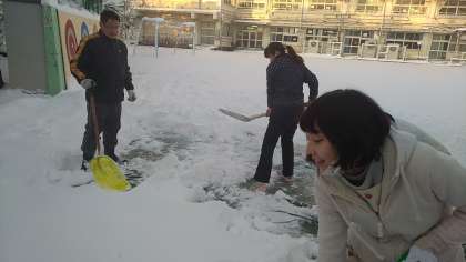 先生たちもせっせと雪かきを進めます。