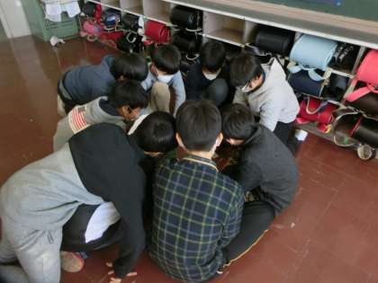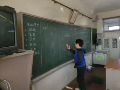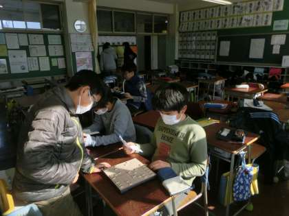 校庭に雪が降り積もったため、今日の休み時間は校舎内で過ごしました。