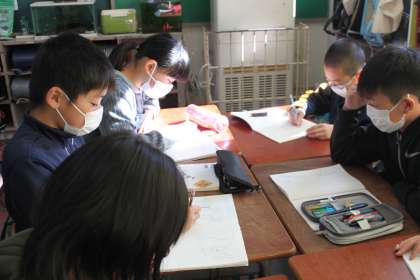 普段の生活班で句会を開いた後は、また別にグルーピングをして句会を開きます。