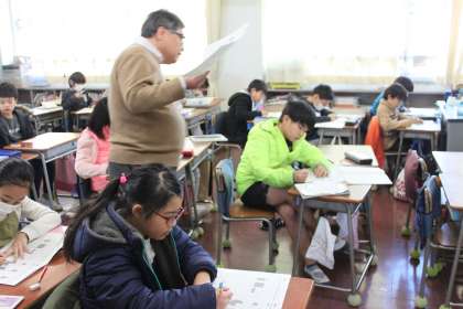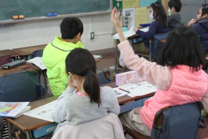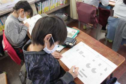 先生の説明をよく聞き、分数を図で表していました。