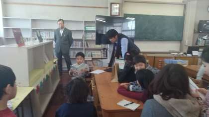 校長先生、PTA会長さん、学校図書館司書の先生をはじめ、多くの人たちが見守ります。