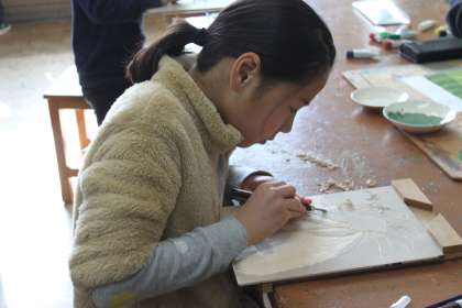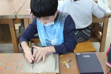 4年生は今週も図工の時間に木版画に取り組んでいます。