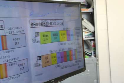 教科書の例では足りないので、地図帳に載っている帯グラフを使って、日本の貿易輸出額を調べました。