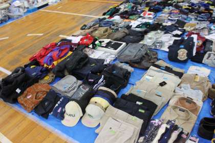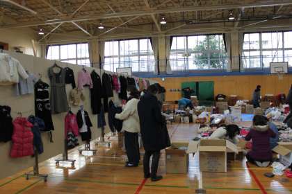 いつもの体育館が、あっという間にバザー会場に変身です。