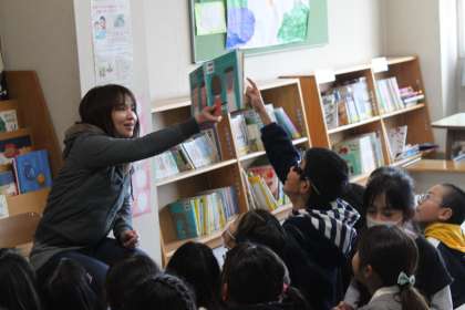 6年生になると、新入生に読み聞かせをする機会もあります。
