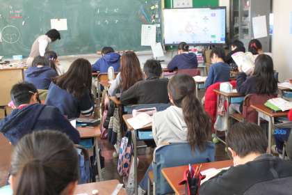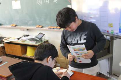 外部講師の先生をお招きして、高学年で外国語活動があります。