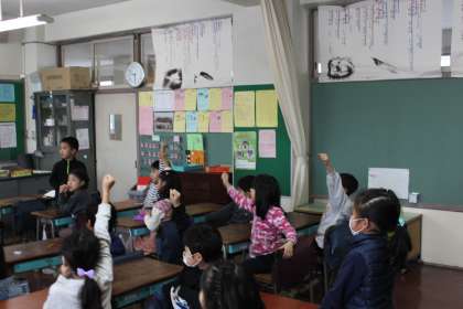 楽しいなぞなぞの時間も秩序正しい1年生でした。