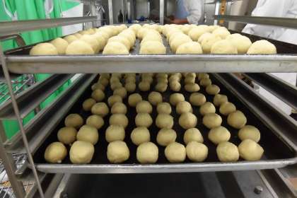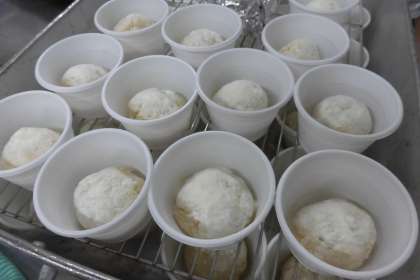 2月の給食には、大豆がすがたや形をかえて、いろいろ登場します。今日は『おから』を使ってお菓子を作りました。名前は『おからのスノーボール』です。