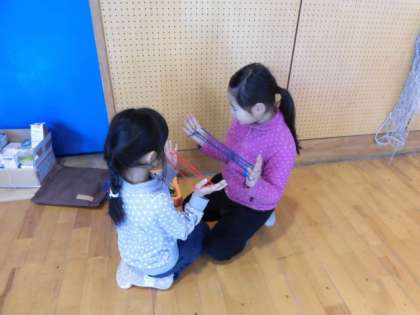 あやとりやけん玉、折り紙などで、楽しく遊びました。