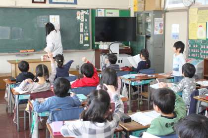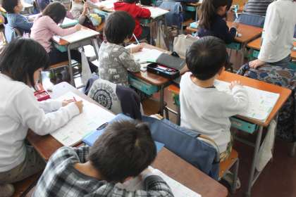 1年生が漢字の学習をしています。