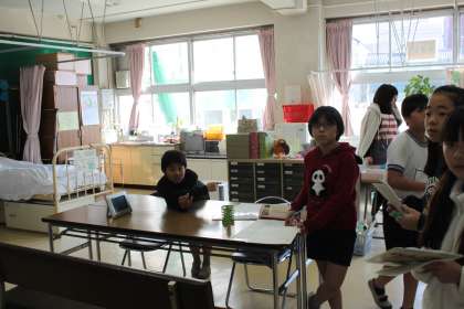 5年生は家庭科の学習で、各教室の気温と湿度、そして照度を調べました。