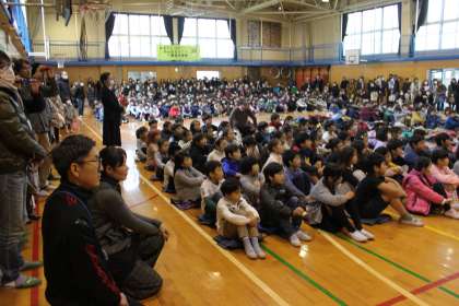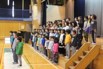 3時間目に全校児童が体育館に集まり、各学年ごとに暗唱を披露しました。