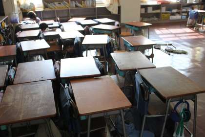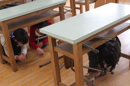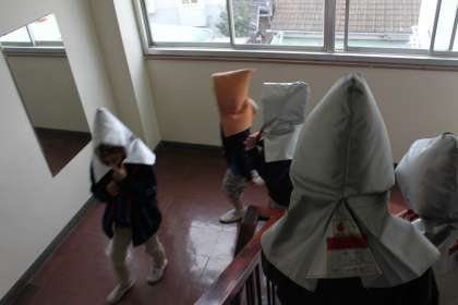 掃除の時間中の避難訓練は珍しいので、子どもたちも戸惑ったようです。