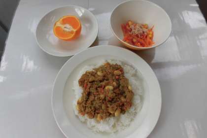 【献立】大豆入りカレー・にんじんサラダ・ぽんかん・牛乳