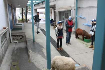 今日は若小おやじの会企画「どうぶつたちとふれあおう」の日です。