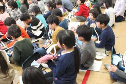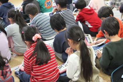 1年生は学年で鍵盤ハーモニカの練習をしました。