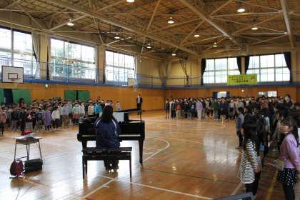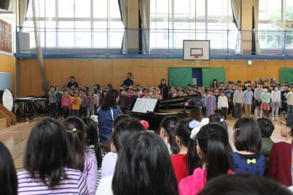 「きみとぼくのラララ」と、若小の校歌をしっかりと熱唱しました。
