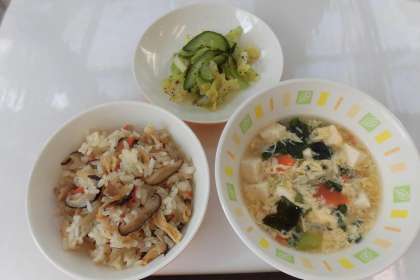 【献立】とりめし・かきたま汁・ゆかり和え・牛乳