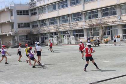 6年生は体育の時間にサッカー型ゲームを楽しみました。
