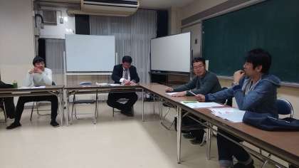 土曜授業の日恒例の、おやじの会会合が夜の会議室で開かれました。