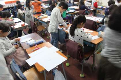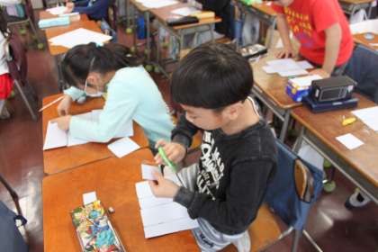同じ大きさの面を写し取って、上手に箱をつくることができた2年生でした。
