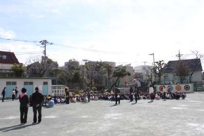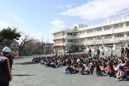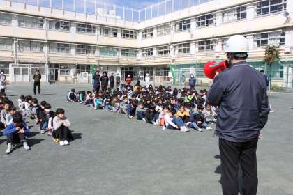 遊んでいた子どもたちも、すぐに避難行動にうつります。