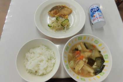 【献立】ごはん・魚の竜田揚げ・もやしの甘酢漬け・みそ汁・のむヨーグルト