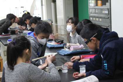 結晶ができる仕組みを理解すると同時に、実験器具を正しく使うことも学習します。