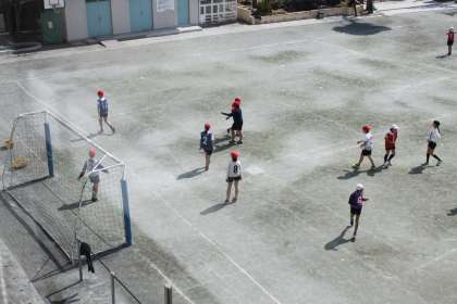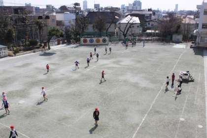 6年生は校庭でサッカーをしました。