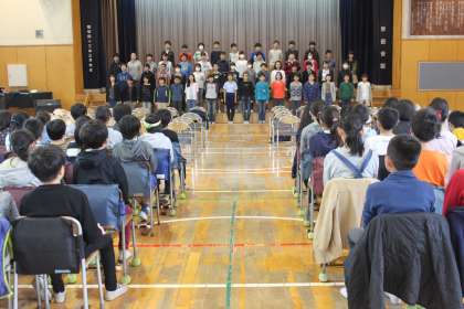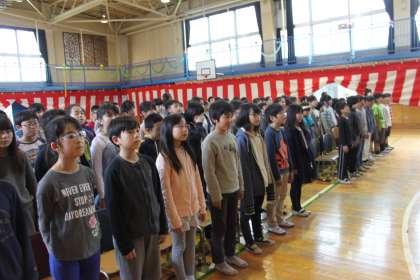 今日は4、5、6年生が合同で卒業式練習を行いました。