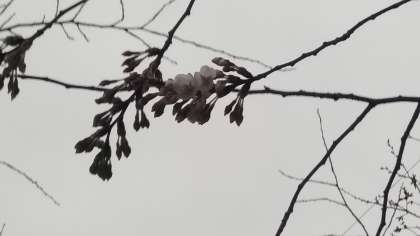 若小北門付近にあるソメイヨシノの古木に今年も花が咲きました。