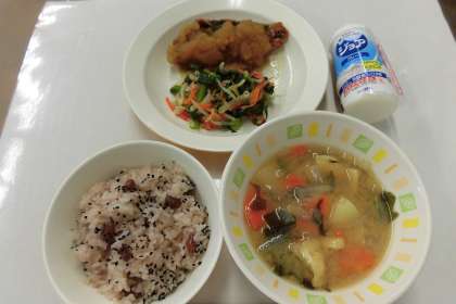 【献立】赤飯・さばの煮おろし・おひたし・みそ汁・のむヨーグルト