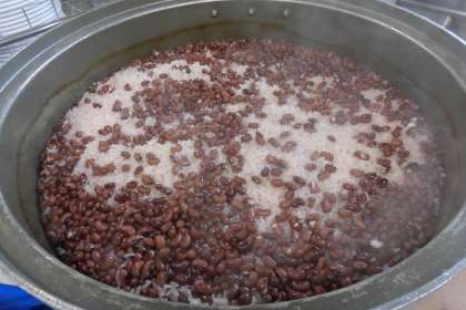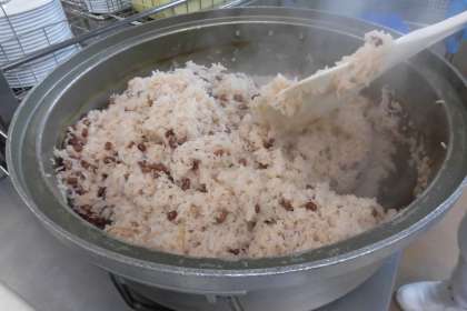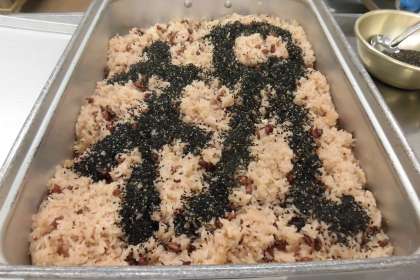 最高学年として、いろいろな場面でみんなの先頭にたって頑張ってくれた6年生に感謝の気持ちをこめて、赤飯を食べました。「卒業おめでとう」と心の中で言いながら。