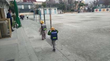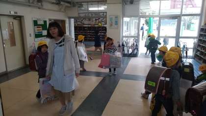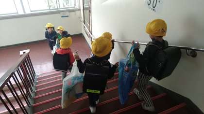 大切な作品をおうちの人に見せようと、家路を急ぐ1年生でした。